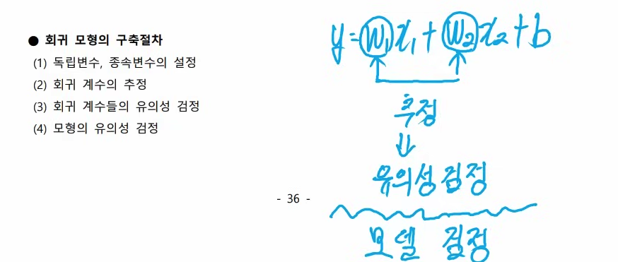 y = wx + b(y 결과, x 원인, w 회귀계수)