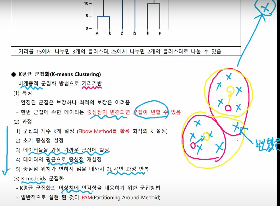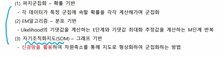 1. 군집분석: 비지도 학습으로 데이터들 간 거리, 유사성 기준으로 군집을 나누는 분석