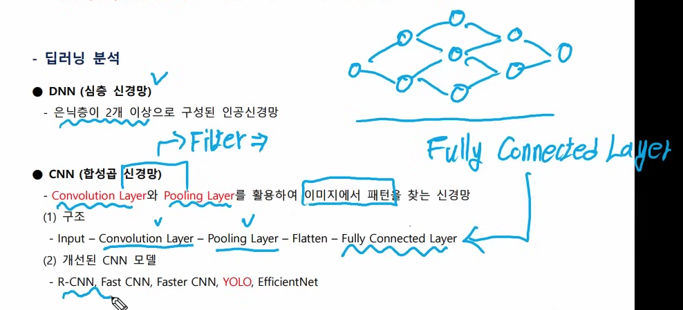 1. DNN (심층 신경망): 은닉층이 2개 이상으로 구성된 인공신경망